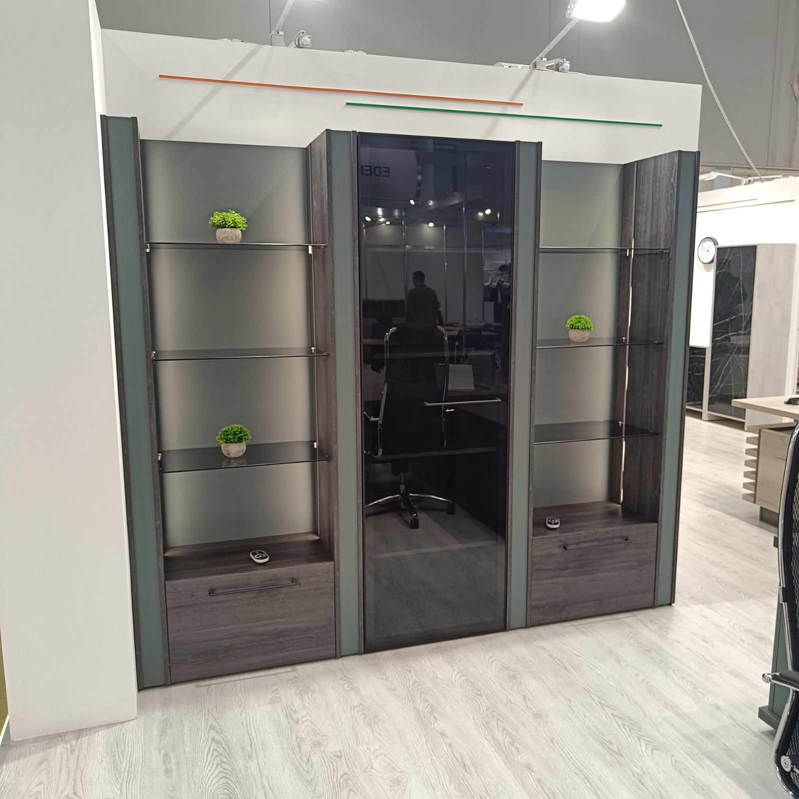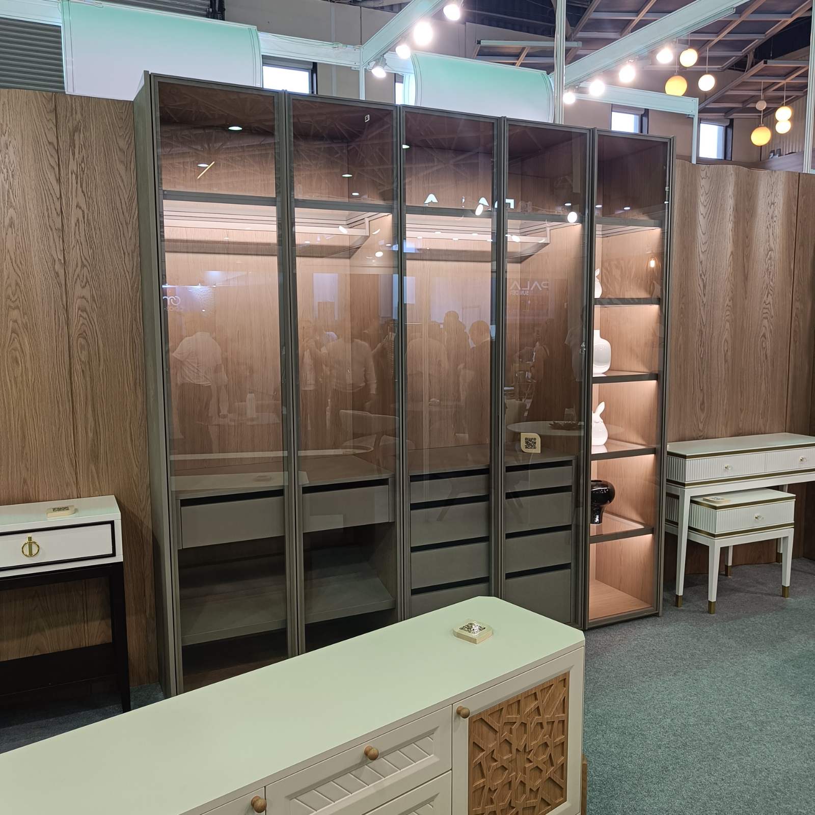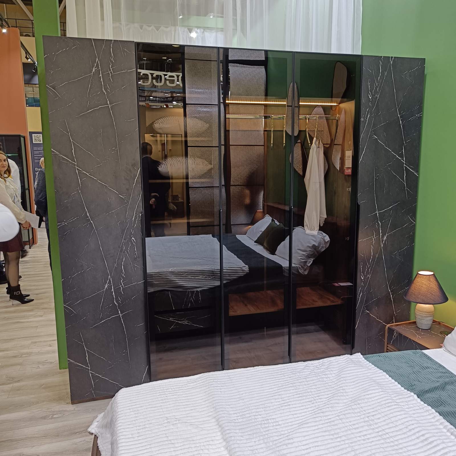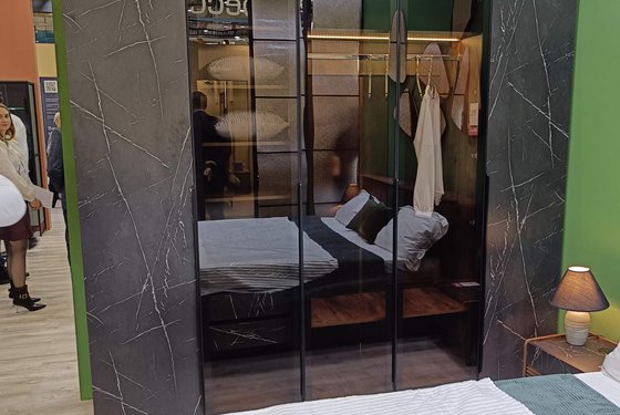 Выстаўка паказала, што шкло і люстэрка таксама трывала займаюць сваё месца ў вырабе мэблі.